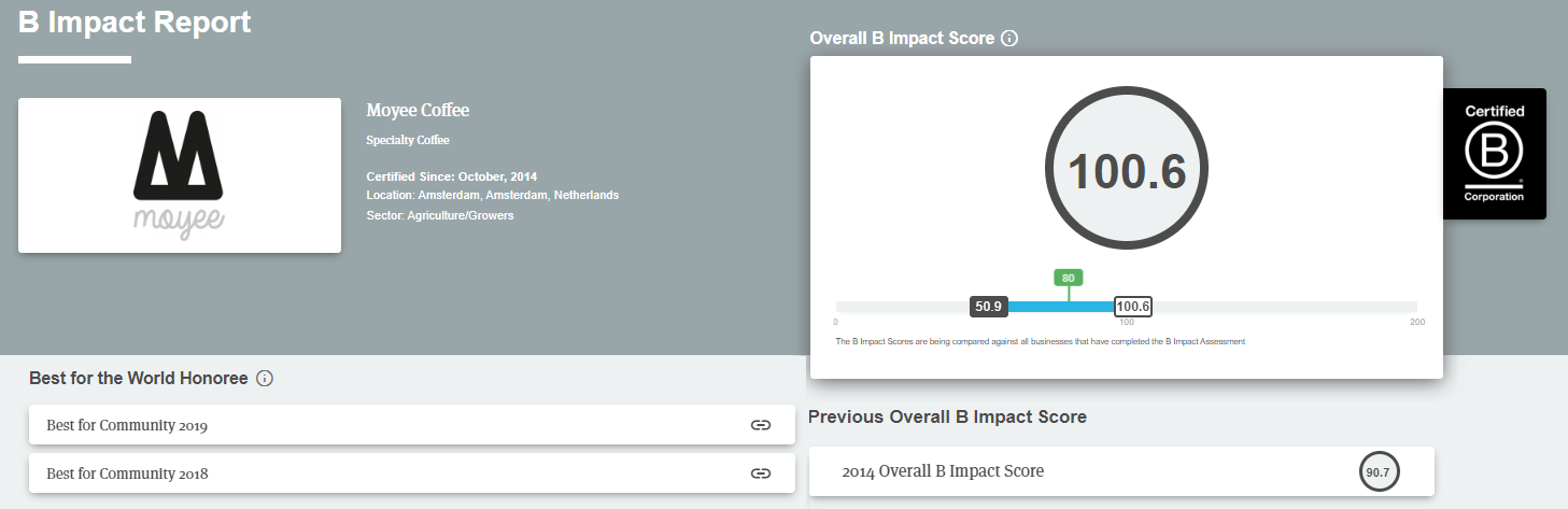 Hoewel niet echt van het certificeren zijn vinden we het toch belangrijk bij te dragen aan het harder maken van de impact claims. De Bcorp telling is daar een goed voorbeeld van #storyproving. We zijn trots op de erkenning die we van hen krijgen voor ons werk.