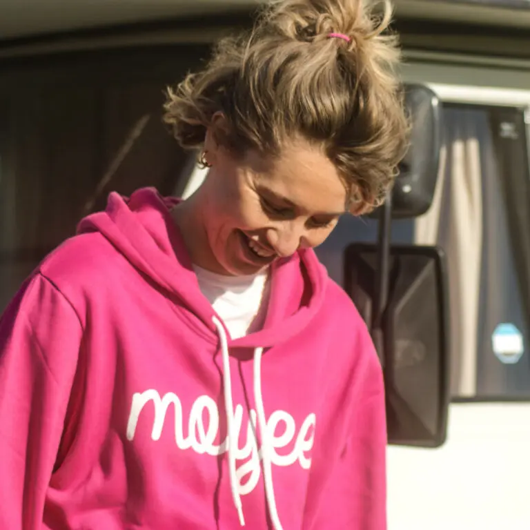 This cool Moyee hoodie will keep you warm this winter (and in our favorite color). It is a unisex model that fits everyone perfectly.